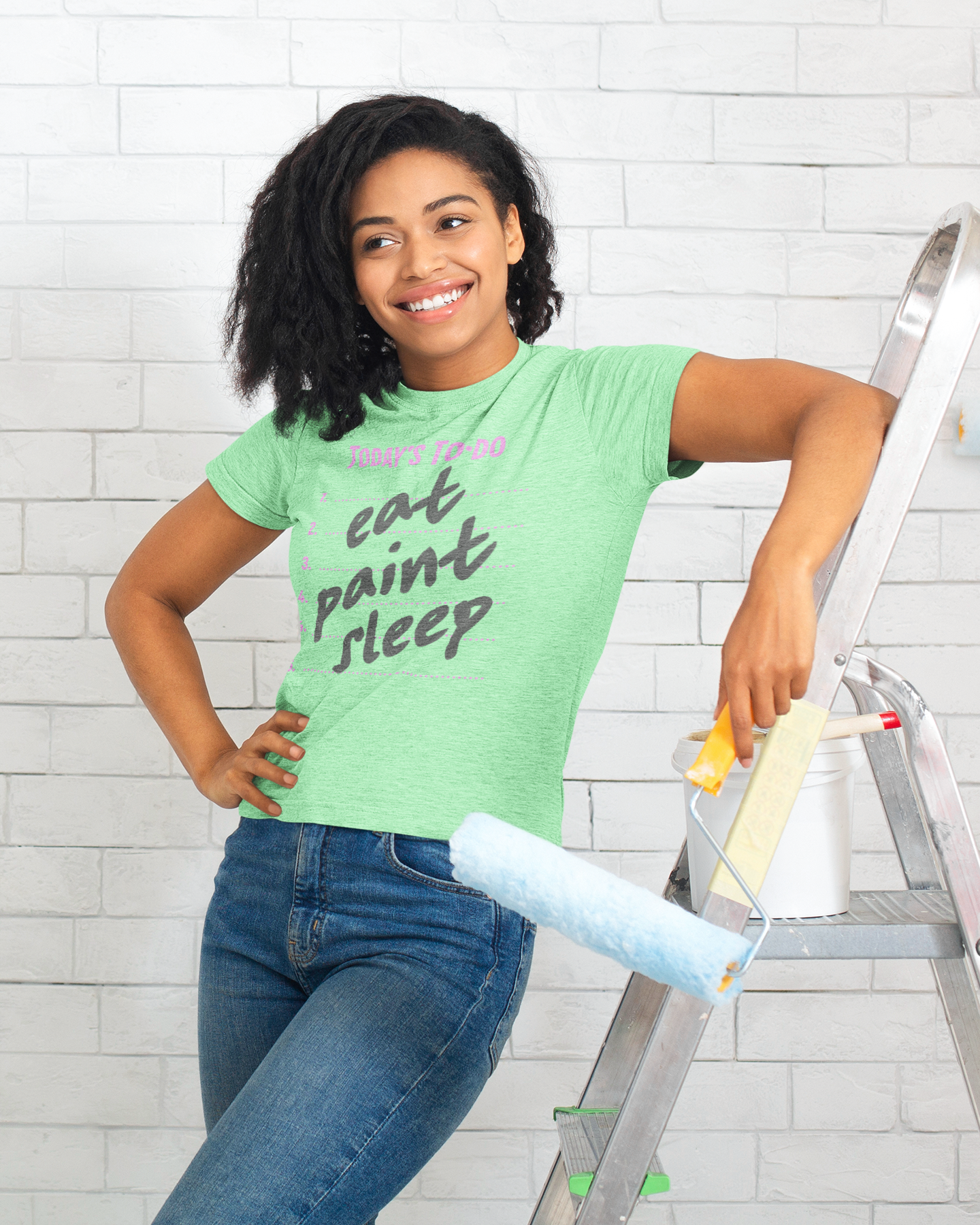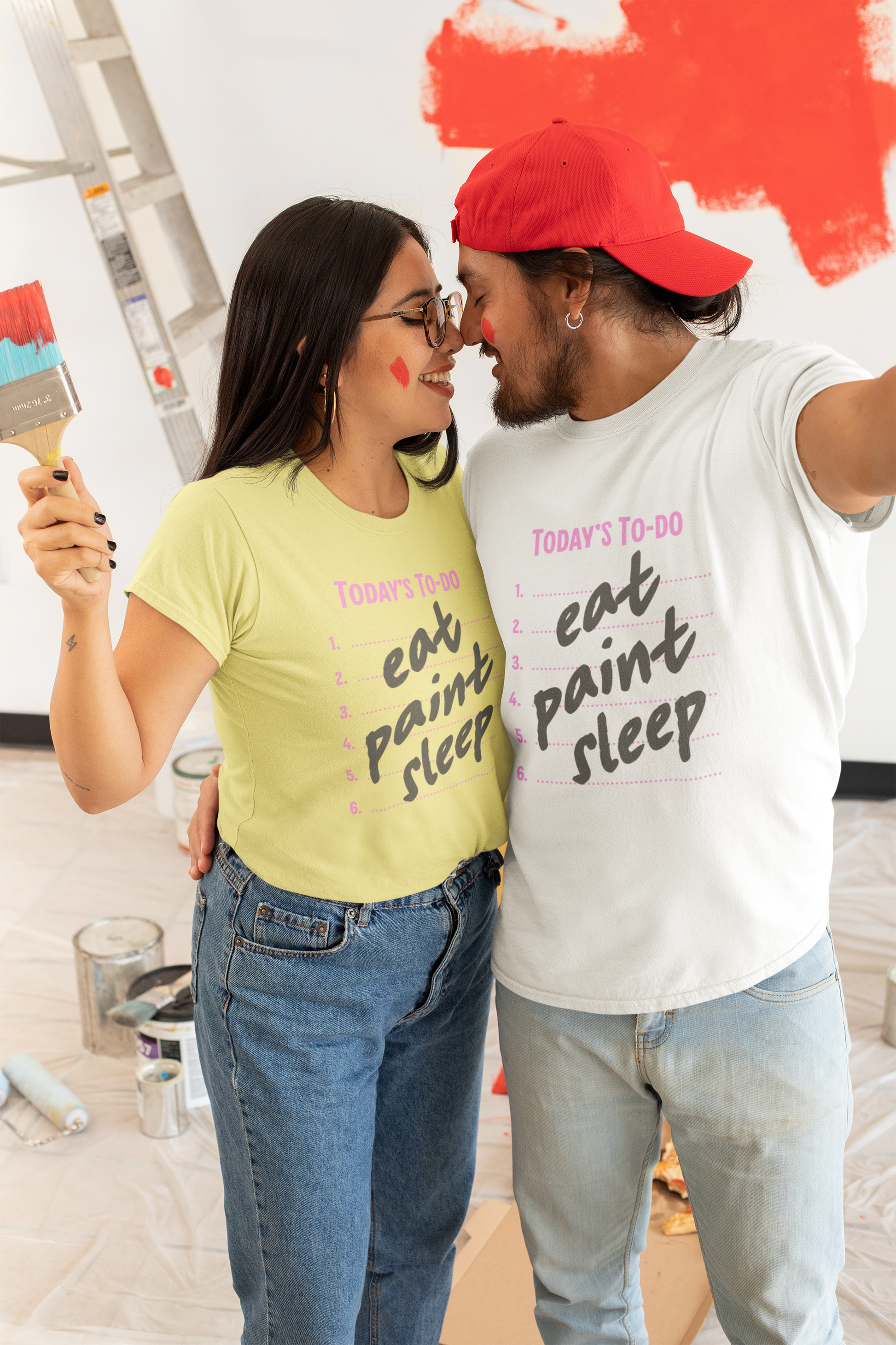 The 'Eat,Paint,Sleep' Tee is funny take on what Artists goes through everyday! This funny quote t shirt can relate to anyone who's life is all about art.