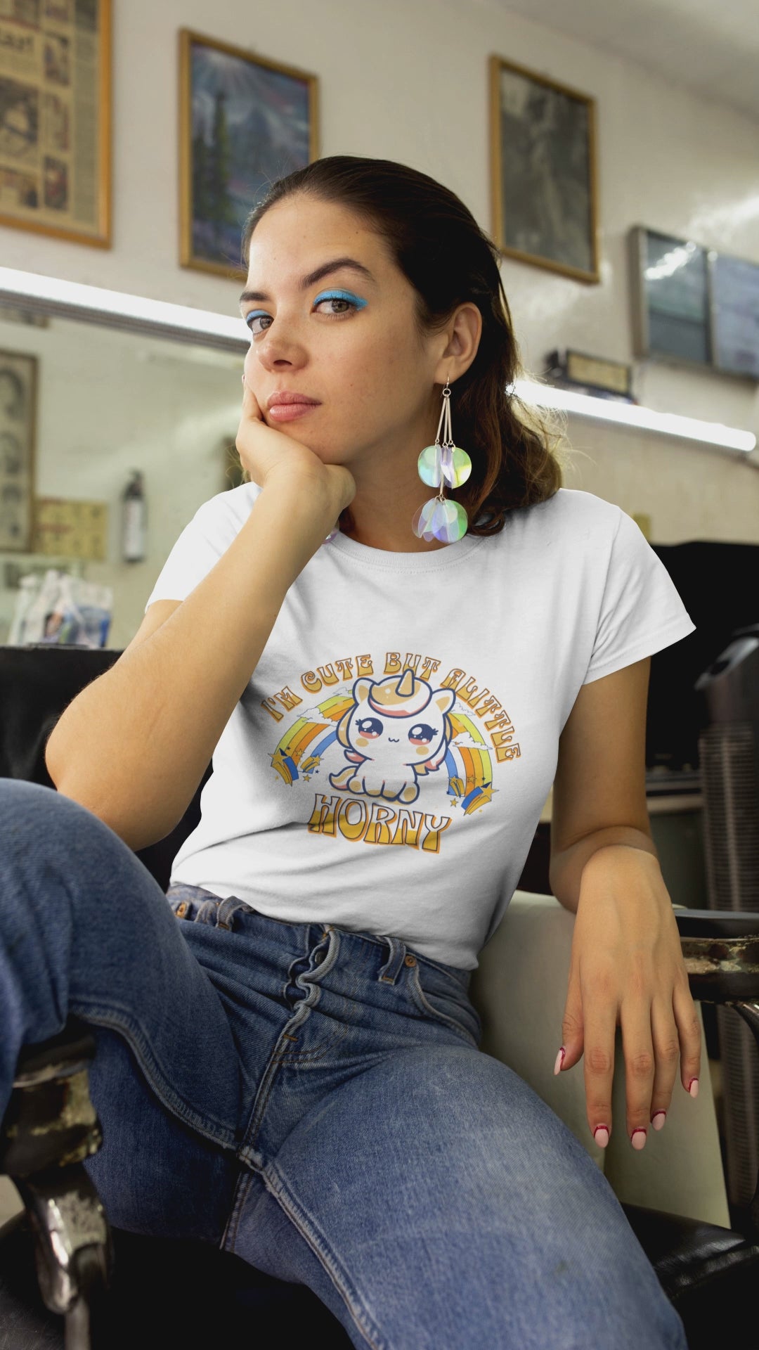 This is a humorous shirt is for girls and women with a playful side to them. Unicorns are always for the special ones. The 'I'm Cute But Horny' woman's soft style Tee is a more feminine tee that the sleeves are shortened to reveal some shoulder.