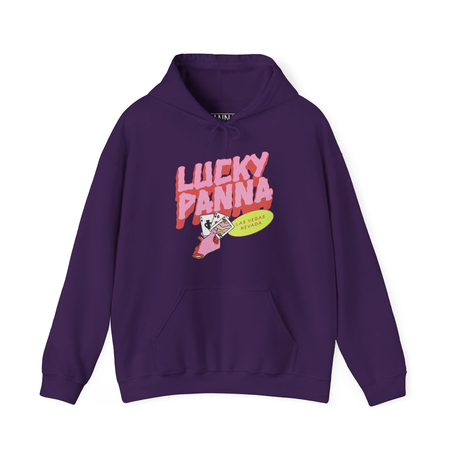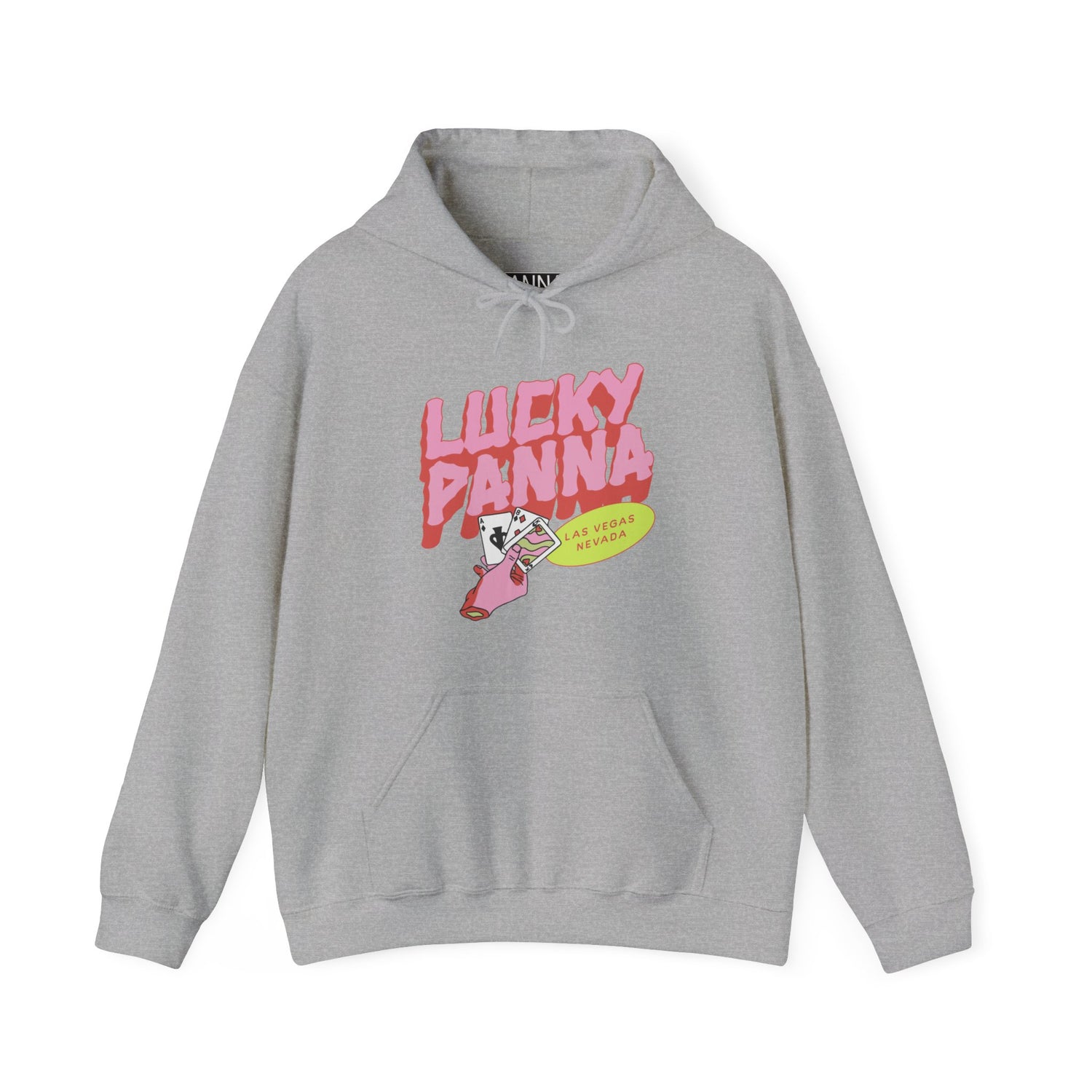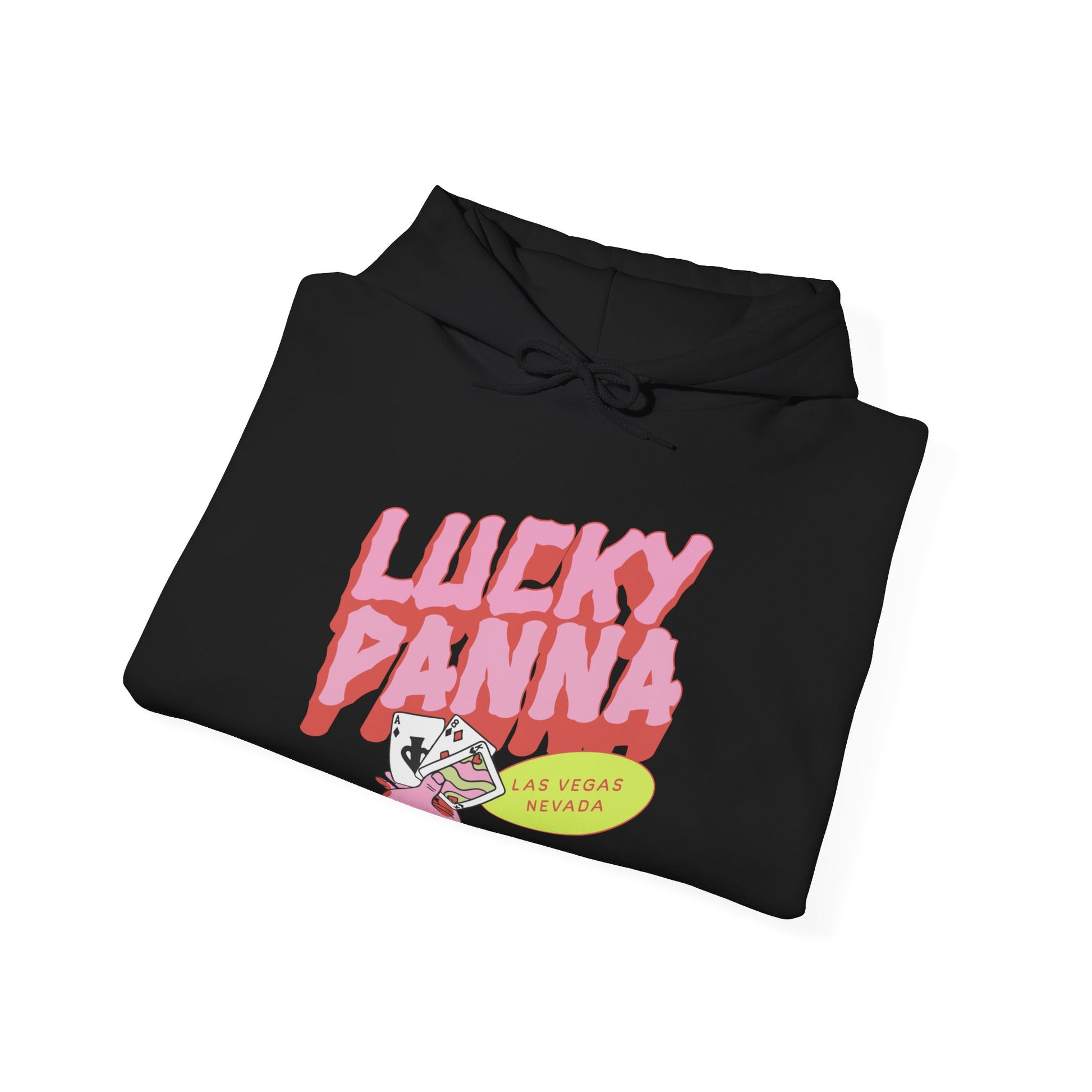 You're Lucky. Play your cards right and you'll be winning with this Hoodie! Our ‘Lucky Panna' heavy blend Gildan hooded sweatshirt is the perfect addition to any wardrobe! Made with a thick blend of cotton and polyester that consists of 50% cotton and 50% polyester for that cozy feel and warmth you need in a hoodie. It feels plush, soft and warm, a perfect choice for any cold day. The color-matched drawcord and the double-lined hood add a stylish flair and durability that tie everything together.